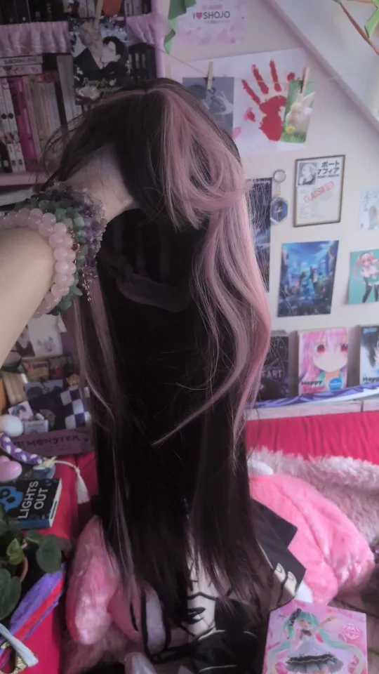 Pink Highlight Long Straight Wig with Bangs